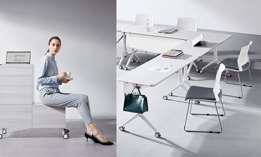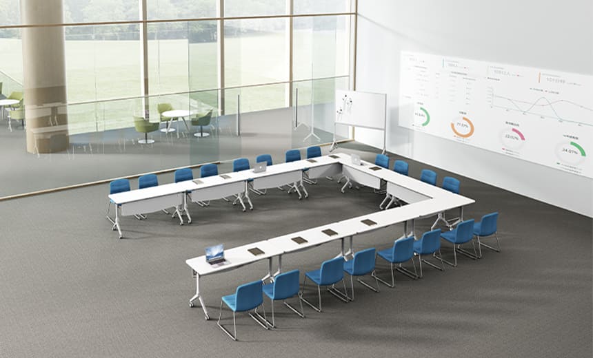 Equipped with castors, Mdecor foldable training desk can be moved freely, allowing you to form different layouts based on the theme and purpose of your training. The height of the castors can be adjusted within a range of 5 mm, and locked if needed, satisfying different training requirements. Pairing layout Linear layout U-shape layout Arc-shaped layout.