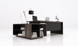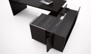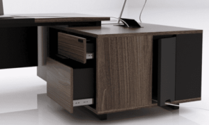 It’s vaguely modern and classic feel. Back storage are proposed in the same finishes as the desks. And with the stone pattern for door panel give more appealing.
